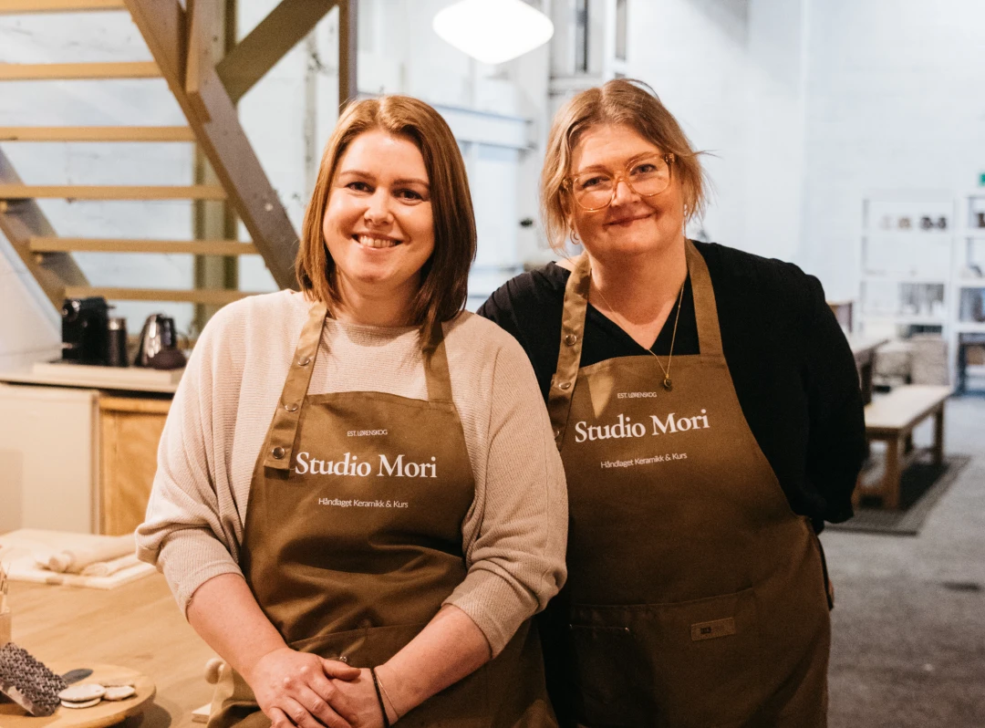 Monica Bromseth og Rita Holm Nilsen driver eget studio og produserer egen keramikk på Bruket Fjellhamar. Etter først å ha jobbet med hver sine prosjekter, Meraki Keramikk og Avrita, begynte de å planlegge sammen og bestemte seg for å samarbeide om en felles visjon: å utvikle et kurskonsept der deltakerne føler seg velkomne i inspirerende omgivelser. Sammen har de bygget opp et lunt og innbydende studio på Klutelageret, med mesanin, vakker keramikk utstilt og et gjennomtenkt interiør som setter stemningen. Rommet bærer preg av deres felles blikk for detaljer og materialer, og gir en fin ramme for kreativ utfoldelse.